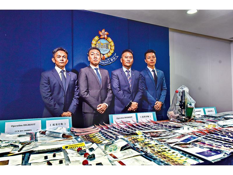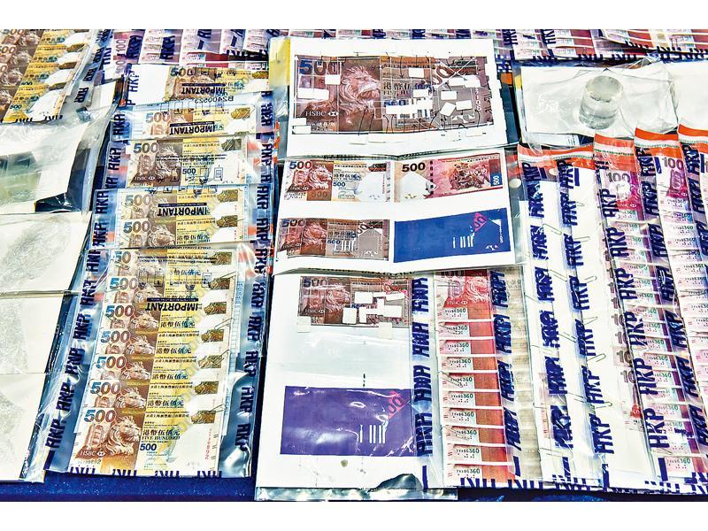 警方商業罪案調查科前日展開「拔苗」行動,成功搗破一個本地偽鈔集團,檢獲逾千張仿製的面值500元及面值100元的2010年版本的滙豐銀行假鈔,總值逾22萬元,警方亦在偽鈔工場搜獲大批製偽鈔工具,例如熨金機、不同銀碼的獅子頭蓋印及螢光劑等,同時發現有1,000元印章,相信已及時止集團進一步偽造假鈔。行動中共有4人落網,當中1名集團主腦負責印製假鈔,其餘3人在深水埗區內食肆、服裝店等使用,由於集團在活躍不足一個月就被瓦解,相信流出市面的偽鈔數量不多。 本報港聞部報道