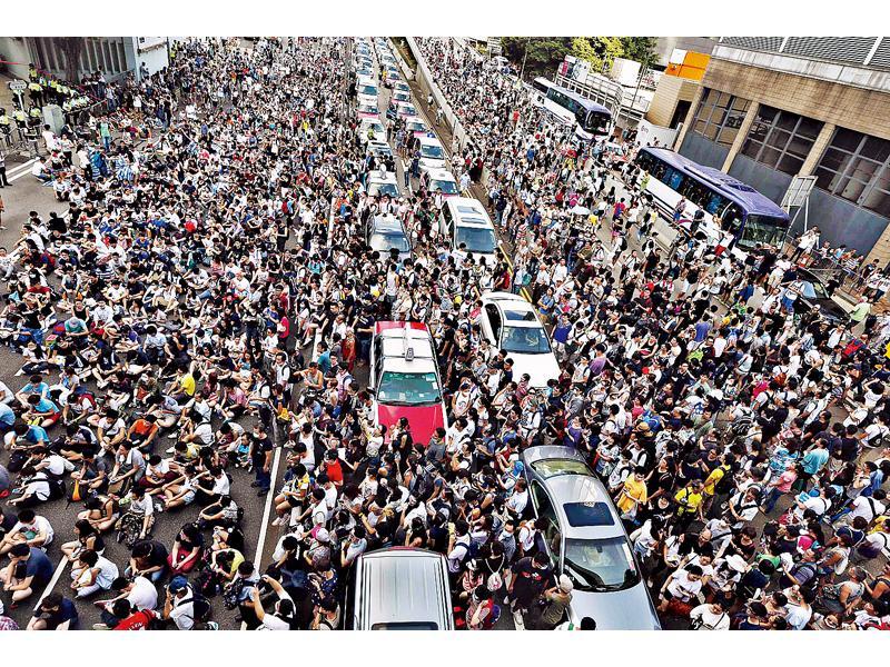 佔領運動舉行時,領中環區的車輛無法行駛,嚴重阻塞