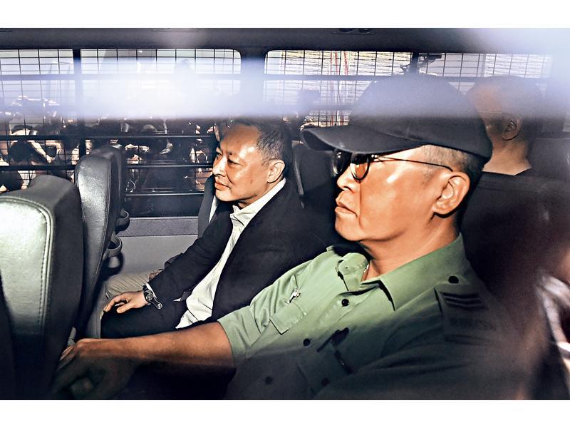戴上手銬的戴耀廷神情輕鬆,坐囚車離開法院。