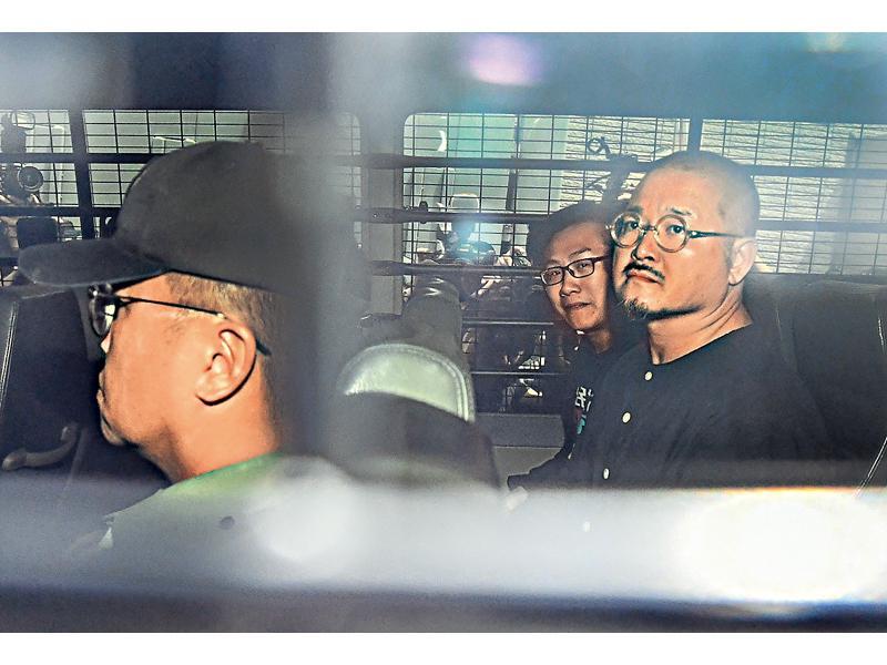 帶眼鏡的邵家臻(右)和黃浩銘(左)各被判囚8個月