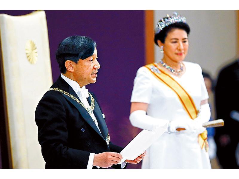 日本已進入「令和」時代,新日皇德仁昨早在皇居「松之間」舉行即位儀式,繼承日皇歷代相傳的天皇信物三神器中的草薙劍、八尺瓊勾玉,以及國璽、御璽,隨後在新皇后雅子陪伴下首度以日皇身份發表談話,誓言將會遵守憲法,時時刻刻體恤國民、與民同在,並祈願人民安樂與世界和平。美國、中國及韓國等領袖均向新日皇作出祝賀。德仁曾留學英國牛津大學,雅子亦先後畢業於哈佛大學及牛津大學,更曾擔任外交官,民眾期盼新天皇帶來新氣象,而日本政治學者指天皇雖只屬國家象徵,並無實權,但明仁常強調謹記戰爭教訓,多次出訪二戰受害國,深受國民愛戴,有一定政治影響力,對牽制安倍政府推動修憲思想起作用,而德仁應會延續父親的影響力。 本報國際組報道