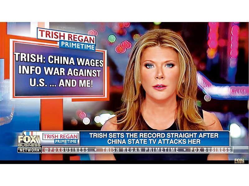 美国霍士商业频道上周其中一个晚上的黄金时段,播出了一段评论,由女主播里根(Trish Regan)主持。她在评论环节中指出,中美贸易不平衡是美国必须用在中国身上的「武器」,更形容中国的繁荣是「以美国利益为代价」,还多次批评中国从美国偷走数十亿美元,美国别无选择,只有对中国发动经济战。里根基本上是把美国描述成中美贸易关係裏彻底的「受害者」。