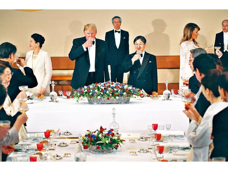 美國總統特朗普成為日皇德仁首位會見的國賓,更獲在皇居設晚宴招待,高規格款待凸顯日本極重視特朗普。有分析認為,日本首相安倍晉三擅長迎合特朗普的喜好,今次不惜打出「皇室牌」,為對方勾勒出一個偉大領導人的形象,而每個傳達給對方的訊息更是精心設計。特朗普此行暫時收穫甚豐,獲確認日本計劃購入105架F-35戰機。 本報國際組報道