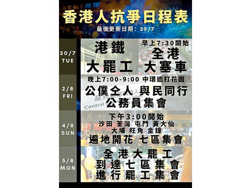 未來一個月仍有多項抗議活動。