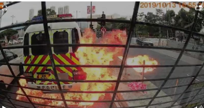 除了警員受襲外,警車也成為襲擊目標。下午約5時,在沙田,更有暴徒從高處向馬路上的警車投擲汽油彈,令警車車身一度陷入火海。昨晚8時許,一輛警車駛經旺角彌敦道近快富行時,突然傳出爆炸聲,其後有人發現附近花槽位置有爆開的疑似爆炸裝置部件,暫未知襲擊目標是否警車。