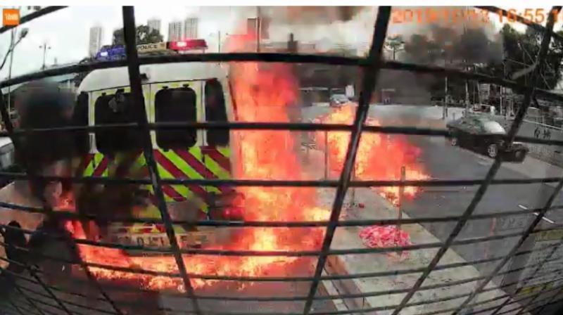 (中)利器刺警頸 硬物擊頭 警署警車遭狂擲汽油彈 (大)林鄭種禍根 警員首密集受襲