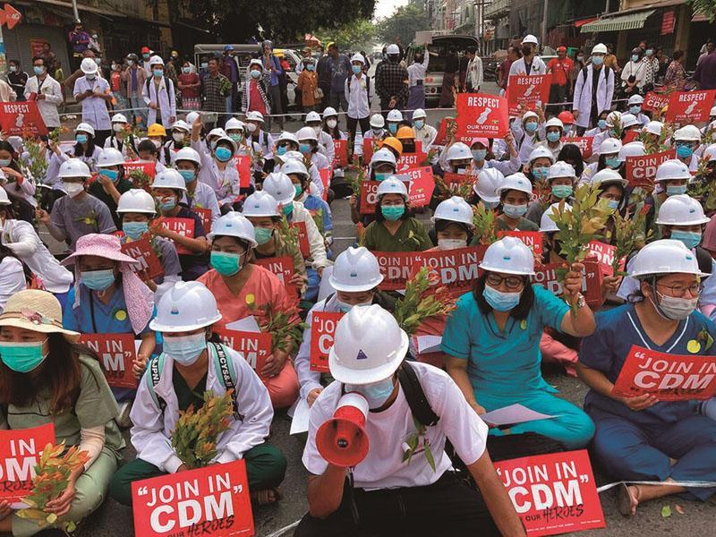 【本報記者報道】緬甸爆發反政變示威持續升溫,緬甸軍方在第二大城市曼德勒於周六(20日)涉嫌開實彈鎮壓手無寸鐵平民,至少2人中槍死亡,連同上星期參與集會的女示威者不幸中槍而延至日前不治,已有3名示威者喪生。民眾在路旁獻上花圈及鮮花悼念,譴責以實彈對付民眾。緬甸國內知名男演員魯敏(Lu Min)因力挺政變反對派而昨天遭警方逮捕。緬甸軍方血腥鎮壓引起多個國家關注,英國外相藍韜文周六表示,考慮向暴力對付示威的人士,採取進一步制裁行動。歐盟外長博雷利亦強烈譴責緬甸軍方暴力對付和平示威抗議民眾,並稱歐盟將會「做出適當決定」。