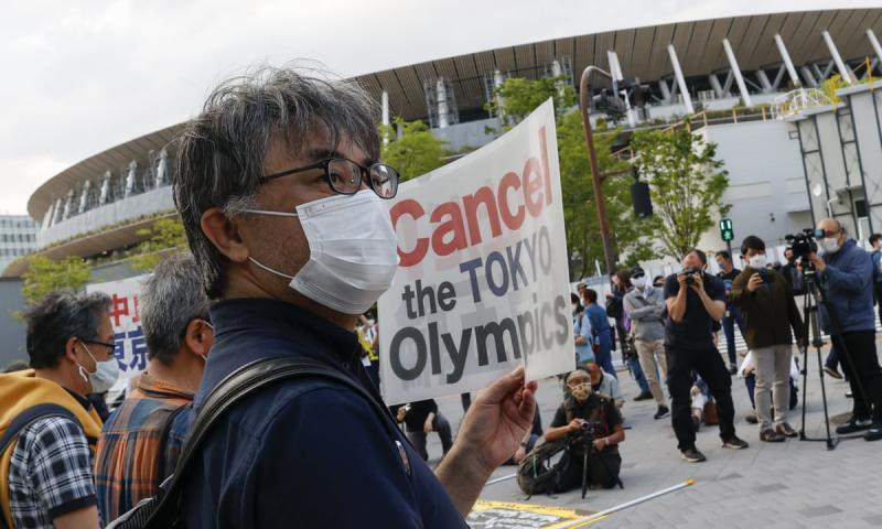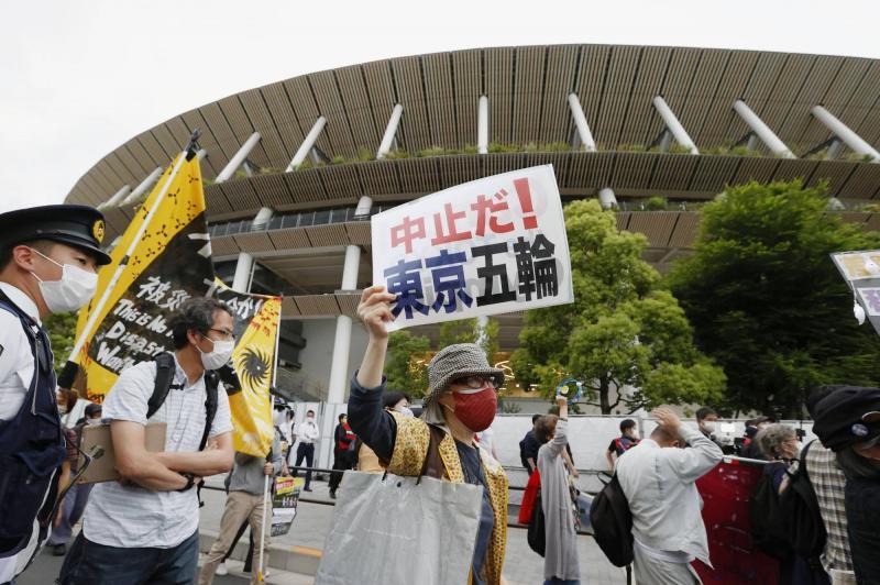 日本國內愈來愈多聲音反對舉辦東奧,東奧田徑測試賽前天在新國立競技場舉行,大約100人在場地附近遊行,表達「醫生和護士都到了極限」的立場。遊行人士在新宿區的「日本奧林匹克博物館」前聚集,傍晚6時左右開始在新國立競技場附近遊行。他們高舉寫有「和奧運相比,更應守護生命」、「停止聖火傳遞」等的旗幟與語牌,向途人表達訴求。《讀賣新聞》一項最新民調顯示,接近60%日本民眾認為東奧應該停辦,支持舉辦人士僅佔39%。至於另一項由《TBS新聞》負責的民調發現,65%民眾希望東奧取消或再次延期,其中37%受訪者希望東奧徹底取消,28%受訪者希望再次延期。