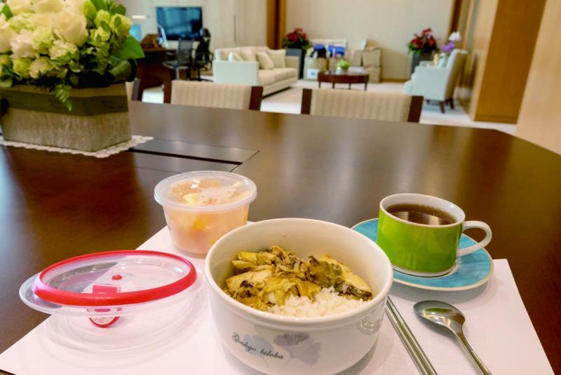 除了午餐,只要細看照片,遠處還看見一個個紙皮箱,相信他搬至辦公室後,還未有時間收拾物品。
