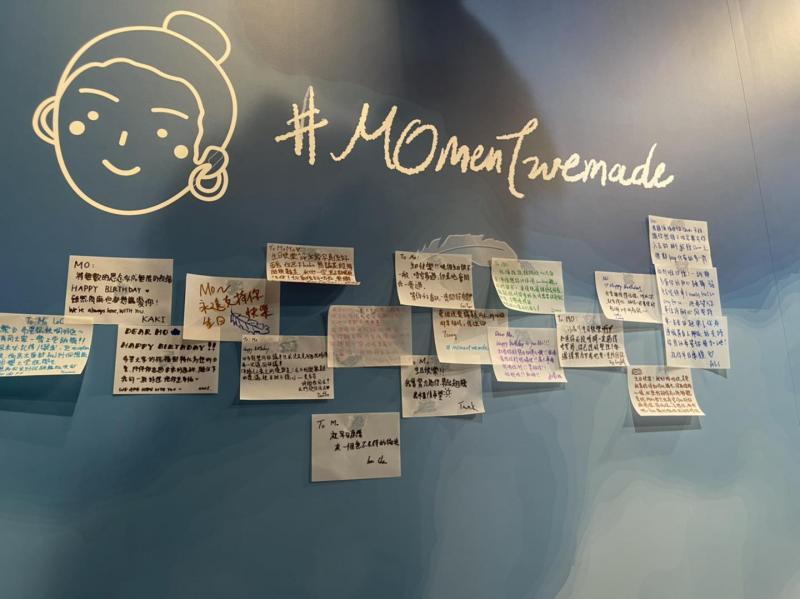 位於銅鑼灣希雲街的展覽場地STILL HOUSE,昨日開始舉行阿Mo的生日應援活動,在落地玻璃上貼有「Happy Birthday 」、「MOment we made」等字句,場內更展出阿Mo從小到大的生活點滴,亦有與女友So Ching、舞蹈員及愛貓等的合照。入場人士會收到一張羽毛貼紙,每根羽毛代表著一個祝福、一份力量,寄語拼湊成堅實的翅膀,再次展翅飛翔。