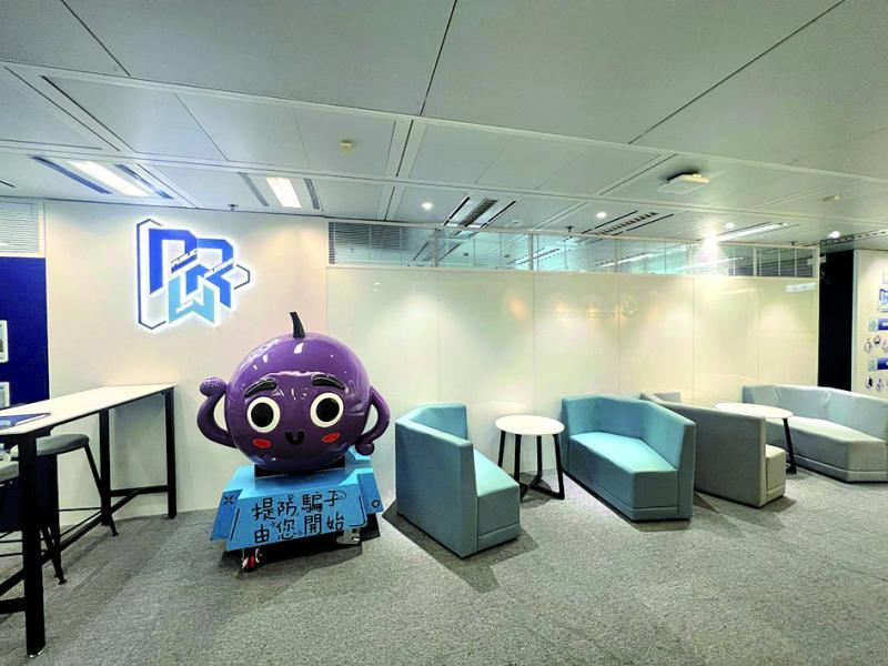 【本报记者报道】警务处公共关係科(PPRB)自从升格公共关係部(PR Wing)后,除了业务更趋多元化外,位于湾仔总部的办公室亦进行优化工程,装修焕然一新,以蓝白色为主调,空间感大增。成仔走进这个新办公室,严选五大「打卡位」,包括增设的创意讨论空间「i-PORT」,而唿吁公众「提防骗子」的防骗吉祥物「提子」巨型摆设,更是头号「打卡位」。