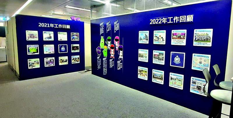 第三个打卡位是同层的「工作回顾」巨型展版,以及走廊两边的珍贵照片,可透视 公共关係部在过去及现在的工作,警民关係如何一步步走来。