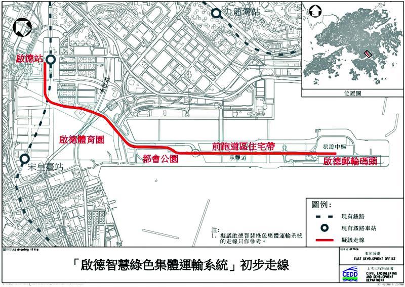 文件又提到政府曾考慮在啟德興建高架環保連接系統至九龍東,但九龍東部分地區已發展,技術上受制於稠密發展,建造及運作成本會十分高昂,並非可持續及可取的選項。