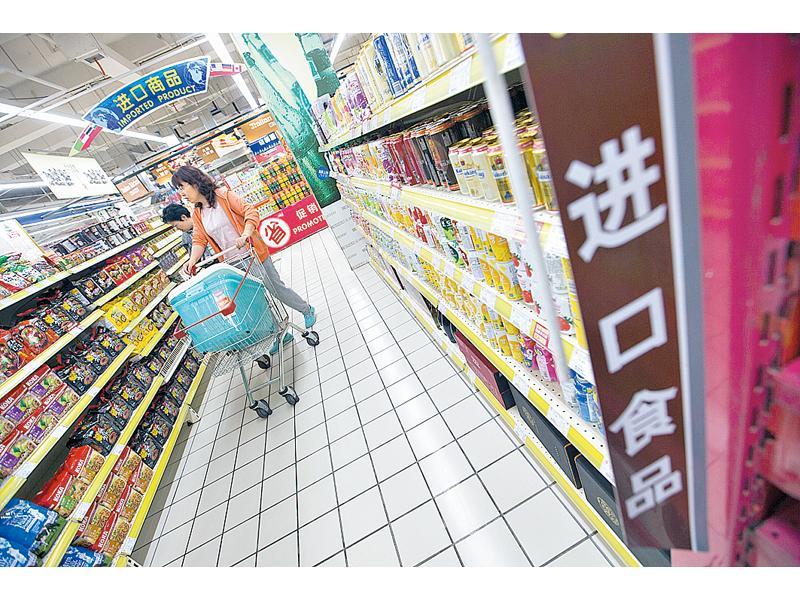 山西太原市民在超市選購進口商品。