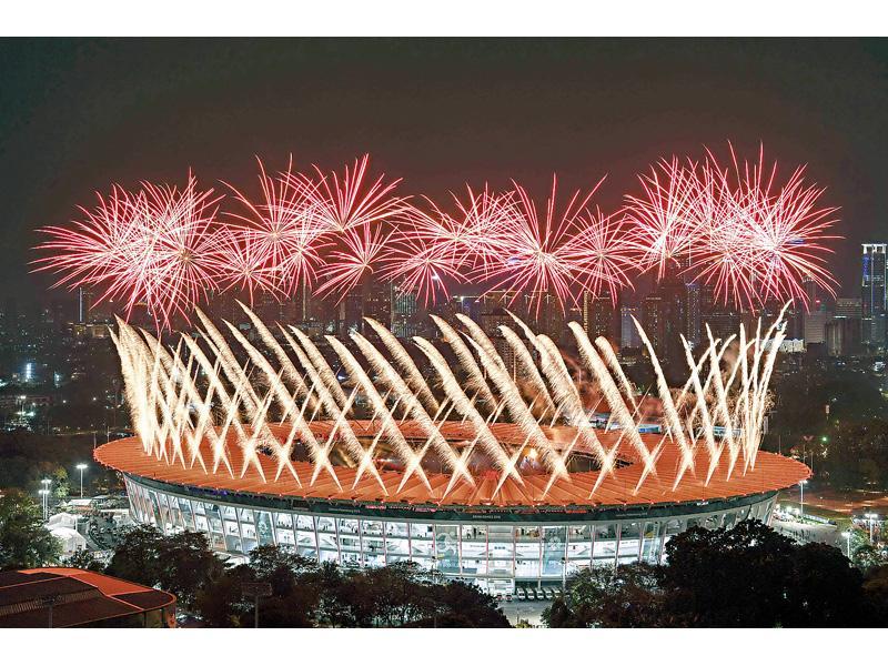亞運歷史上第一次的「雙城記」,正式在印尼揭開帷幔。第18屆亞運會昨晚舉行開幕式,今日開始在雅加達、巨港兩個城市舉行40個大項、決出共465面金牌。印尼總統佐科維多多宣布亞運開幕,並由印尼一代傳奇女子羽毛球手、在1992年為印尼奪得首面奧運金牌的王蓮香燃點聖火。今屆亞運第一金,預料會在今日早上於武術套路男子長拳項目產生。