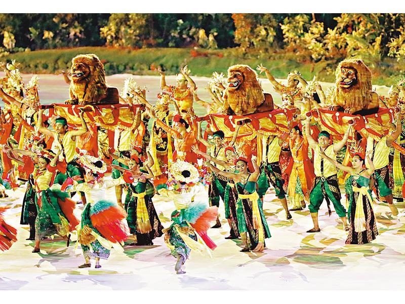 整個儀式長約兩小時,第一個表演由1,500名印尼原住民大跳印尼傳統舞蹈「沙曼舞」。「沙曼舞」又名「千手舞」,獲聯合國認證為非物質文化遺產。舞蹈員經過17個星期排練,排成方陣,表現出各種整齊的幾何圖案。