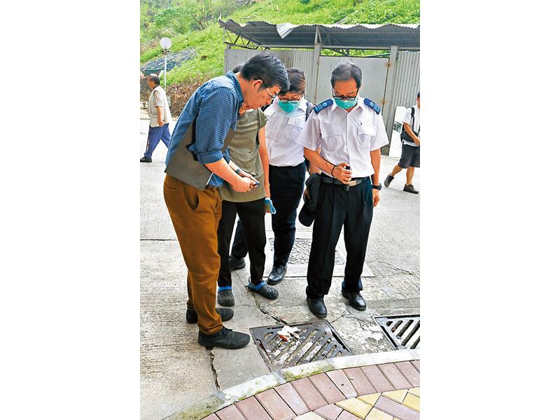 食環署人員到彩雲邨視察邨內的衞生環境。(司徒華冠