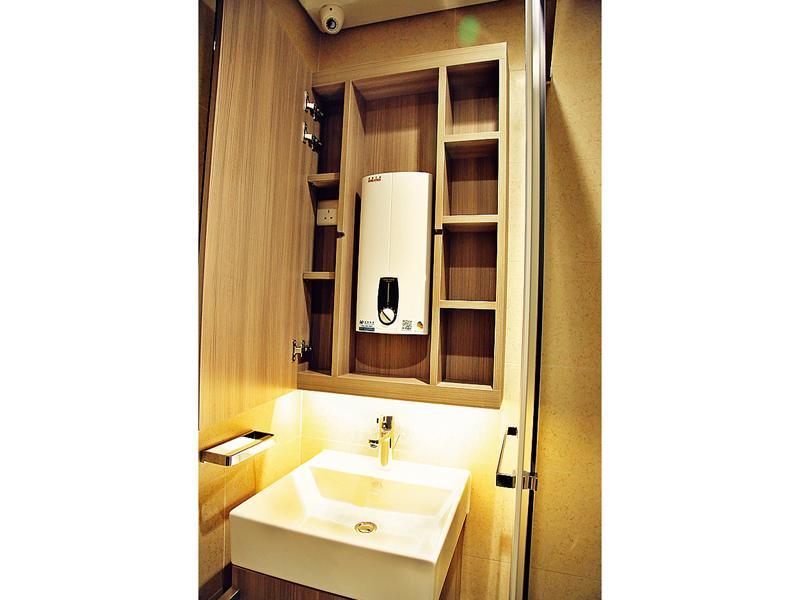 開放式單位洗手間的拉櫃內藏有熱水爐,但已佔去大量
