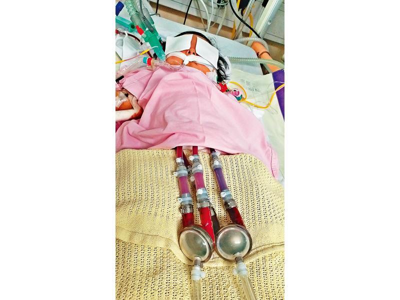 小智愷同日轉送瑪麗醫院兒童深切治療部作進一步治療,但其情況一直惡化,因呼吸困難要使用連續性正壓呼吸器協助呼吸,X光片顯示其左肺萎陷,要施行氣管插喉,使用呼吸機協助呼吸,期間小智愷心臟更一度停頓,要施行心外壓恢復心跳。此外,小智愷血壓持續偏低,心臟衰竭情況嚴重,更開始影響身體其他器官,需要用強心藥。