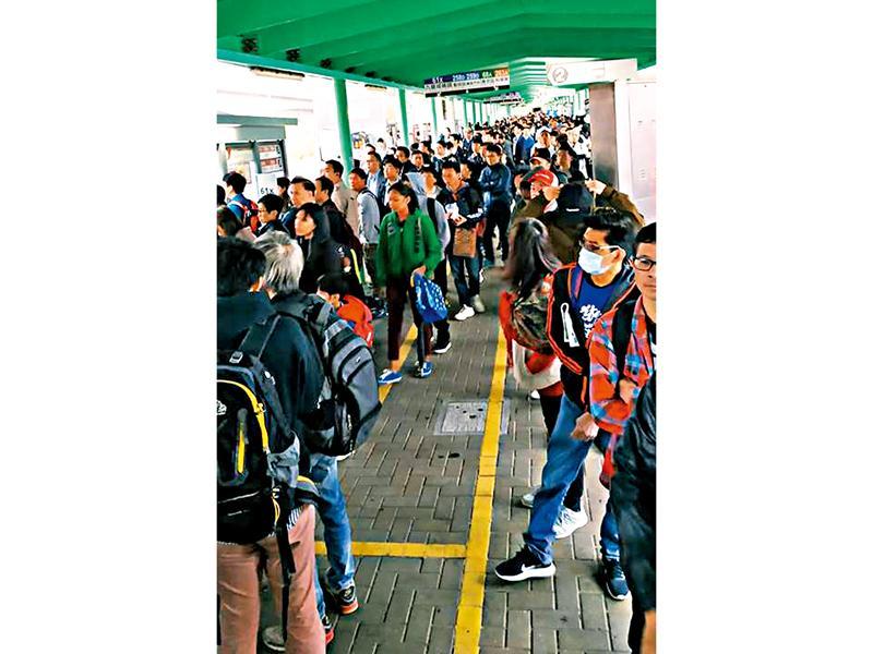 乘客擠滿屯門公路轉車站,看不到盡頭。(網民Pen