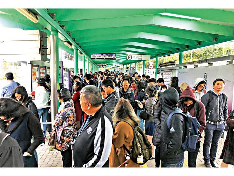 屯門公路轉車站擠滿候車乘客。