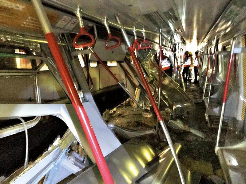 【本報港聞部報道】港鐵列車罕見地發生嚴重碰撞,英國機械工程師學會院士盧覺強接受《成報》訪問時指出,列車在車長緊急煞車後仍有大約時速20公里餘勢,足以造成163噸的撞擊力,如果事發時列車載有乘客,恐怕死傷慘重。