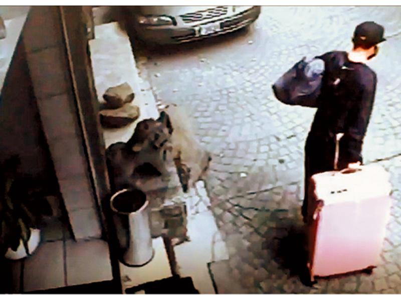 閉路電視畫面中的粉紅色行李箱,相信是棄屍的工具。