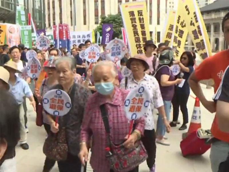 爭取全民退休保障聯席,聯同公民黨、人民力量等政黨及民間團體超過150人,周日(10日)上午10時由中環長江中心遊行至禮賓府,要求政府落實免審查全民退保制度。