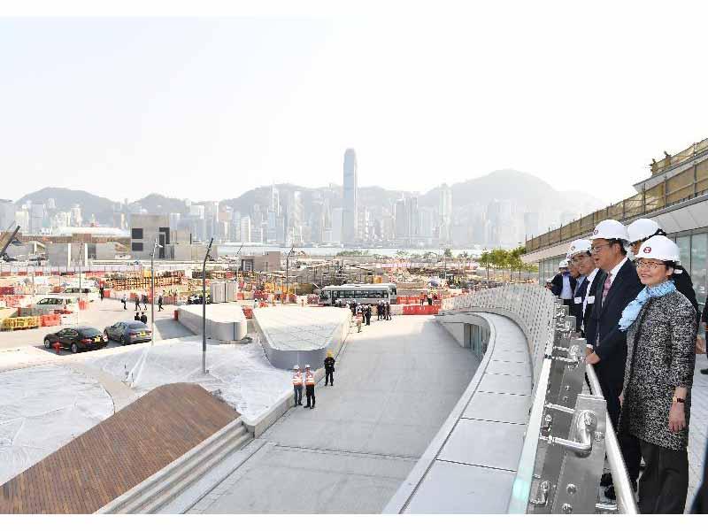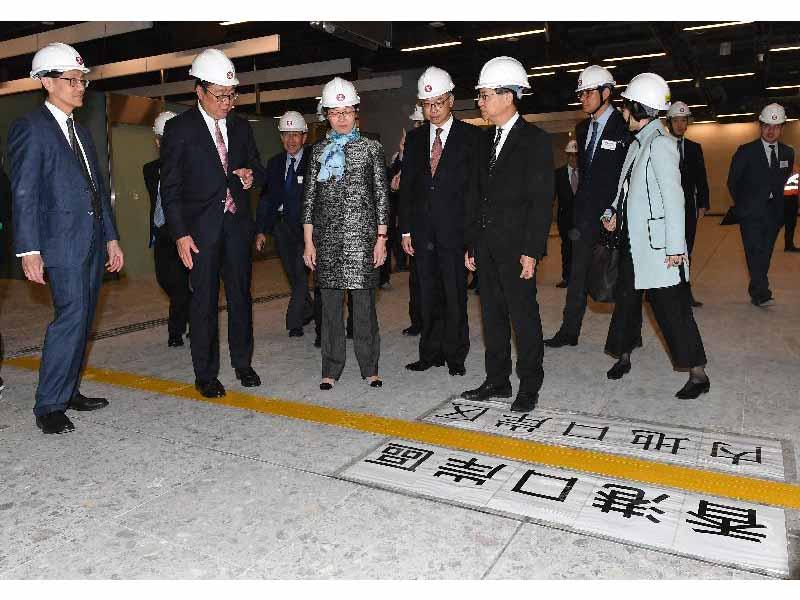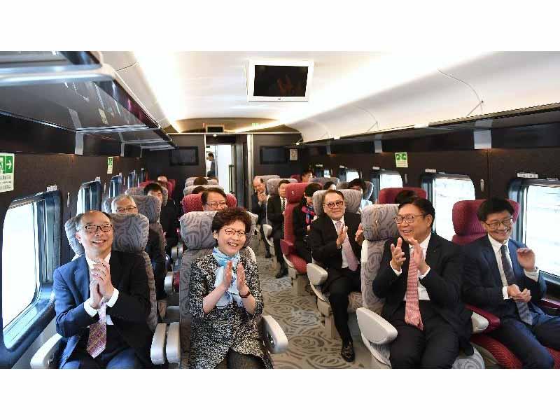 林鄭月娥下午視察工程進度,由石崗列車停泊處乘坐高鐵到西九龍站工地,她說,高鐵香港段整體工程已完成99%,要達到今年9月開通的目標,所欠的並不是那餘下百分之一的工程,而是只有一步之遙的「一地兩檢」本地立法,希望議員以香港利益為依歸,回應市民的熱切期盼,以務實的態度審議《廣深港高鐵(一地兩檢)條例草案》。