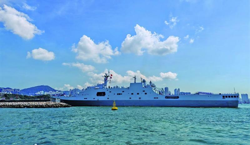沂蒙山艦則屬071型船塢登陸艦,於2016年2月加入服役,艦長210米,寬28米,正常排水量逾19000噸,具備裝載能力強、續航距離遠等優勢,可執行快速立體登陸作戰、物資運輸及醫療救援等多項任務,是中國海軍兩棲作戰體系的重要組成部分。