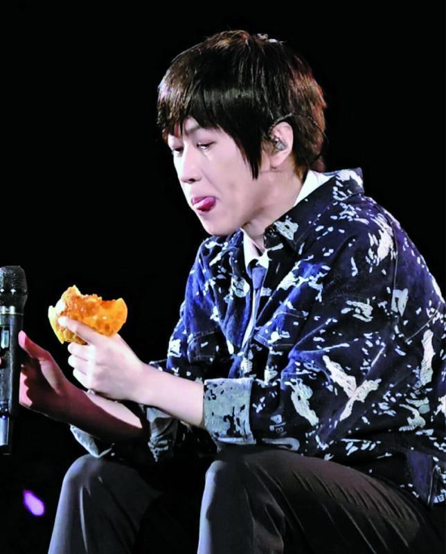 阿信演出前進食較少,未知他是否肚餓,昨拿起一個金黃酥脆的菠蘿包咬了一口後,便深情演唱情歌《突然好想你》。一邊「嚼嚼嚼」地吃著,一邊唱著:「突然好想你~」,雖然歌聲依然穩定,卻因嘴裡的菠蘿包發出了幾聲「吃播音效」,瞬間打破了歌曲原本的悲傷氛圍,引發全場笑聲連連。