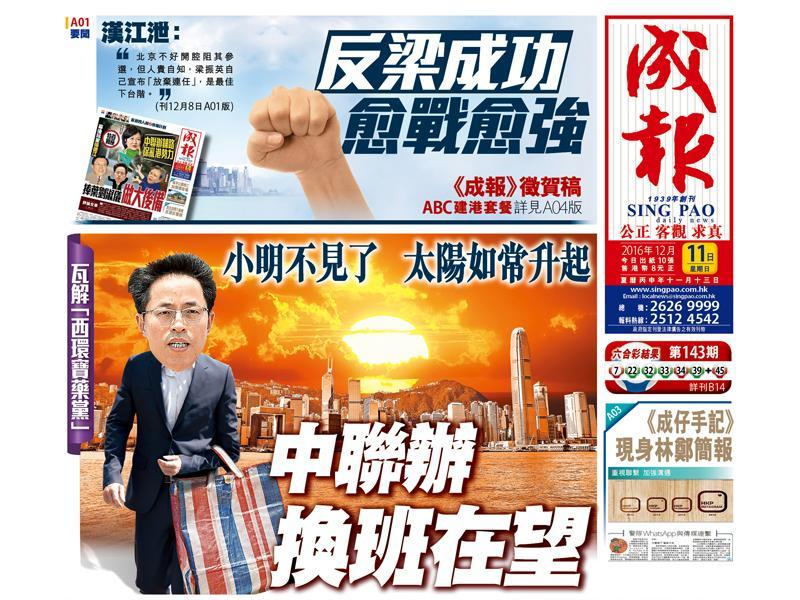 梁振英被勸退,也是符合現實。中央眼清心明,怎會不知「佔領運動」部分起因及事態急速惡化,是源於陰謀家借香港這片國際輿論關注之地,與中央核心抬槓攪局:若沒有「全國人大8.31決議」,就不會令到政改討論沒商量餘地;若沒有梁振英擺下強硬態度拒見學生組織,就不會激化年輕人。當時,張德江主政香港政策下,還有人建議要武力清場,幸而習主席沒理會,否則進一步把問題惡化。