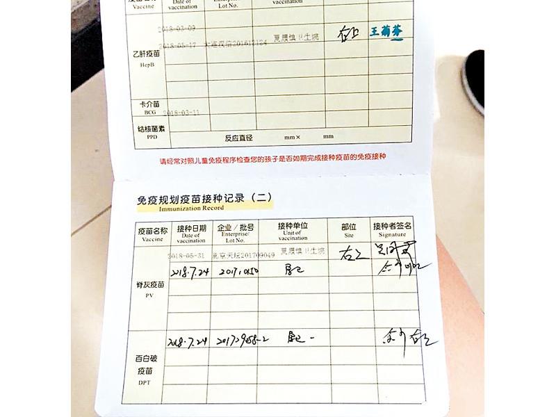 【本報兩岸組報道】內地問題疫苗主角長春長生生物目前仍在調查階段。有長生生物員工對外披露,調查組進駐該廠後全廠停工,工人無限期休假。據河南等地家長披露,他們帶孩子去接種疫苗,最關注的是疫苗企業,但接種紀錄中的疫苗「生產企業」一欄本周三起名稱莫名其妙地消失,唯目前未知是基層衛生機構操作不規範,還是官方授意。