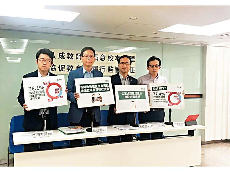 【本報港聞部報道】教協一項調查顯示,近八成教師不滿意校本管理,教協促請教育局加強履行監管責職責、改善申訴機制以及建立諮詢機制。