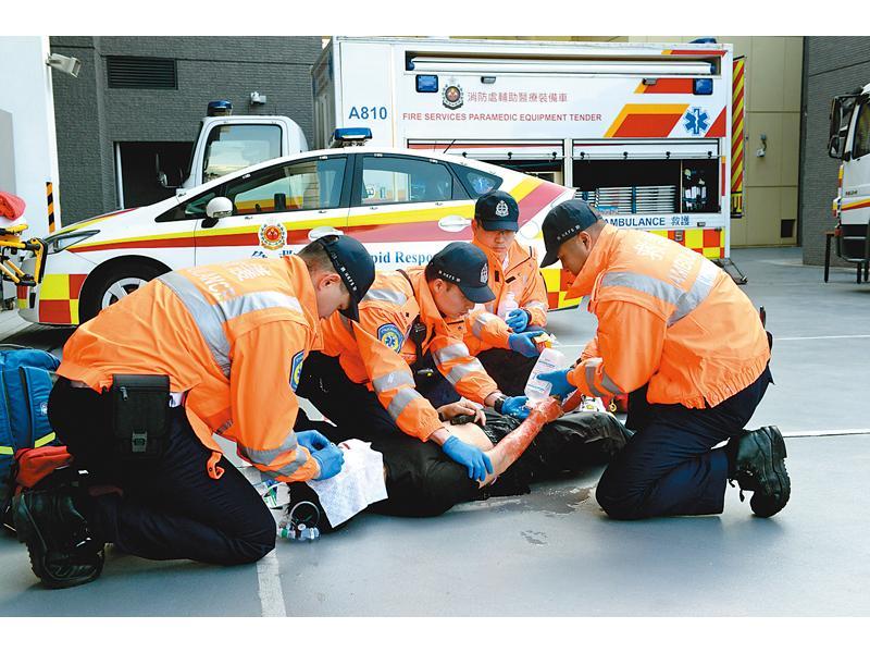 事故當晚,消防處共出動16輛救護車和59名救護人員,更特別調動三輛支援車到場,包括快速應變急救車、輔助醫療裝備車和流動傷者治療車。黃英強解釋,快速應變急救車上的同事負責現場指揮救護員進行拯救。輔助醫療裝備車負責提供額外急救資源,車上的氧氣樽、生理鹽水和燒傷敷料較一般救護車為多。 |